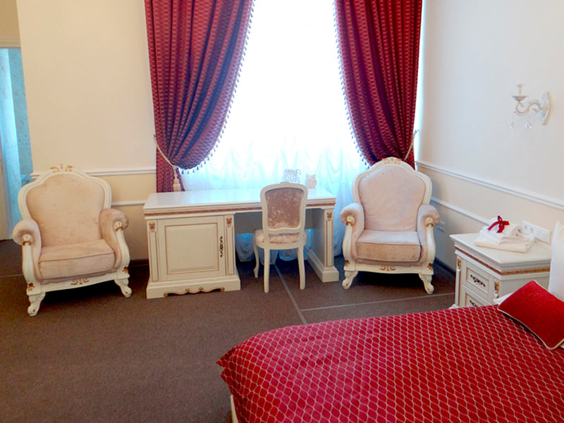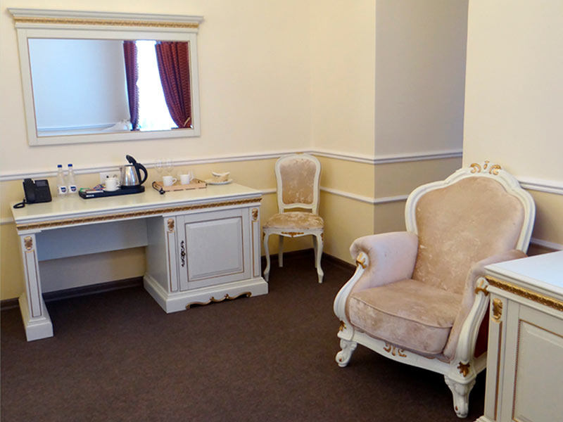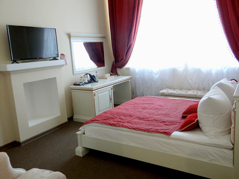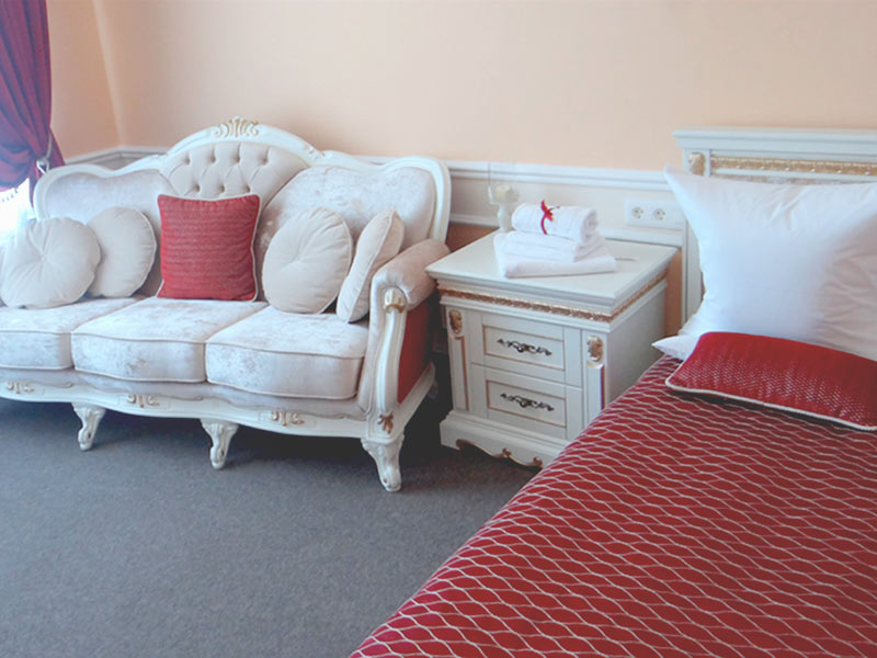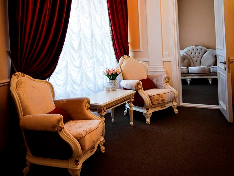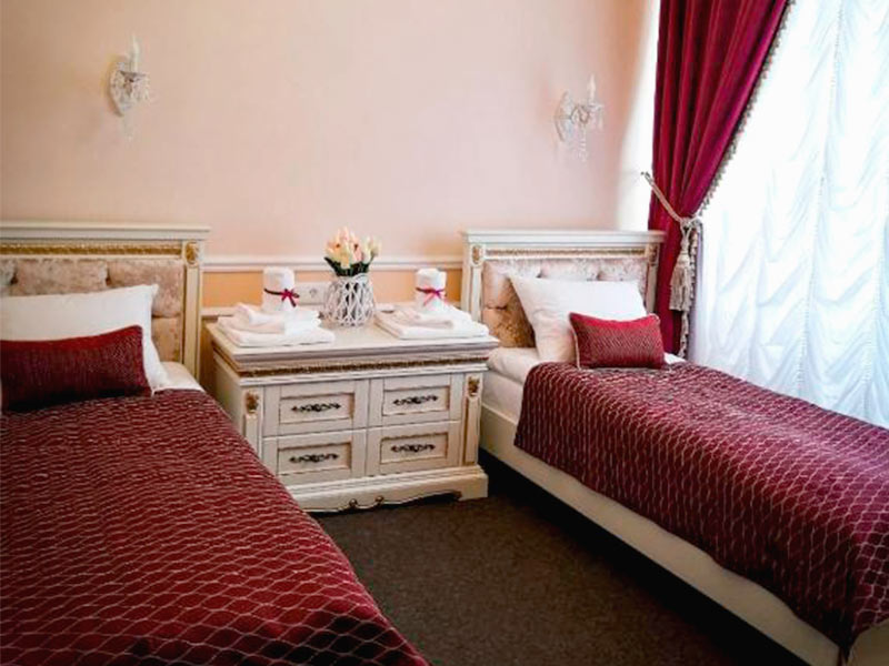 3х-звездочный отель расположился внутри самого Коссовского дворца, построенного в стиле английской неоготики. Каждая деталь интерьера отеля воссоздает дух шляхетской эпохи с ее любовью к роскоши и богатому убранству. На потолках расположились массивные хрустальные люстры, стены украсили лепнина и фрески, на окнах заботливо повешены роскошные шторы, в комнатах аккуратно расставлена старинная мебель и предметы интерьера. Все это помогает нашим гостям почувствовать себя представителями знатного шляхетского рода.