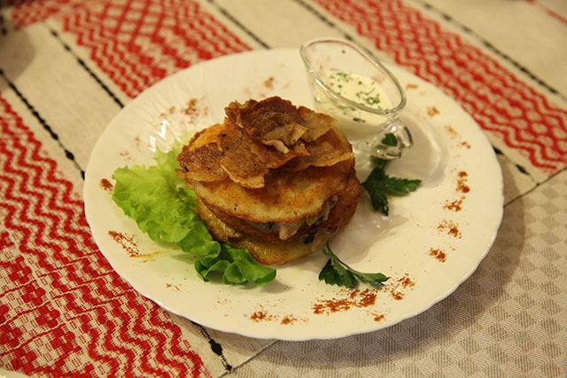 - драники в разных вариациях (наполненные грибами, колбасами, мясом, сметаной, шкварками);
