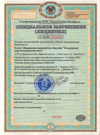 Лицензия Госпромнадзора МЧС Республики Беларусь |
