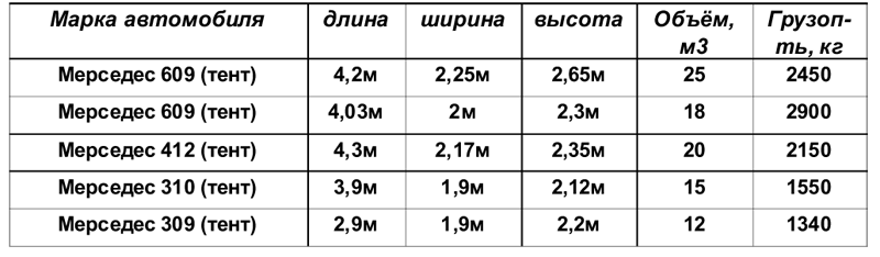 грузоподъёмность до 1,46т объём до 12м3 (подробные размеры для подготовки груза).
