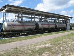 Введенная в эксплуатацию в 1978 году, ППС Барбаров предназначалась для комплексной подготовки вагонов-цистерн для перевозки нефтепродуктов и осуществляла плановые виды ремонта. Сегодня на ППС Барбаров размещается основная площадка подготовки вагонов из-под перевозки темных и светлых нефтепродуктов, на которой одновременно могут обрабатываться 64 железнодорожные цистерны. Производственная мощность площадки – 451 цистерна в сутки, а годовой объем подготовки – до 100000 вагонов. На площадке введены в эксплуатацию промывочные приборы TZ-75 датской фирмы «Toftejorg», обеспечивающие высококачественную промывку вагонов. Подача воды и вакуумирование осуществляется насосным оборудованием основной насосной станции, перекачка промышленных стоков - двумя канализационными насосными станциями. На предприятии проходят подготовку под налив вагоны из-под перевозки битумов и гудрона, осуществляются плановые виды ремонта. Введена в эксплуатацию специализированная площадка подготовки для плановых видов ремонта вагонов из-под сжиженных углеводородных газов, прошедших дренирование остаточного давления газов. Производственная мощность площадки – 8 вагонов-цистерн в сутки. Введена в эксплуатацию в автоматическом режиме ресурсосберегающая бессточная рециркуляционная промывочная универсальная мобильная станция СПУМ-03 модульного типа, позволяющая производить подготовку одновременно 3-х цистерн с помощью моющих средств. Проектная мощность станции – 50 вагонов в сутки. Для сбора отработанных нефтепродуктов и регенерации промывочной воды на ППС Барбаров имеются очистные сооружения, включающие нефтеловушки, промежуточные подземные резервуары для нефтепродуктов и воды, два резервуара обезвоживания нефтепродуктов емкостью 700 м3 и один емкостью 1000 м3, система сбора промышленных стоков. На предприятии имеется аттестованная в Госстандарте на техническую компетентность в соответствии с требованиями СТБ ИСО МЭК 17025 химическая лаборатория, в которой имеется самое современное оборудование для контроля качества реализуемых нефтепродуктов – эмульсии нефтяной и битума. Персонал химической лаборатории также проводит проверки газовоздушной среды котлов цистерн на взрывобезопасность при их подготовке под огневые работы. Ремонтно-механическая и электротехническая службы ППС Барбаров, оснащенные необходимым металлообрабатывающим, электросварочным и специальным оборудованием, обеспечивает ремонт и реставрацию запасных частей к сливо-наливным и запорно-пломбировочным устройствам вагонов-цистерн, ремонт трубопроводов и запорной арматуры, ремонт и монтаж технологического и электрооборудования. ![]() ![]()