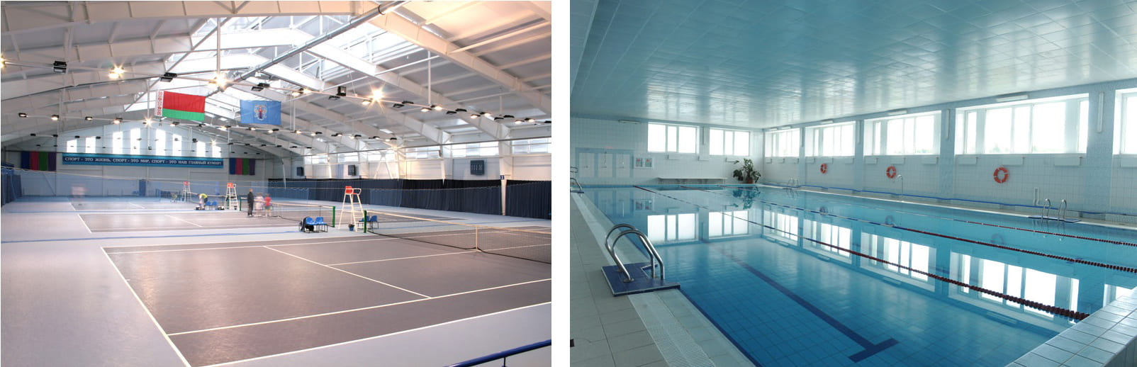 Крытые и открытые теннисные корты построены в 2013-2014 гг. Всего в Вашем распоряжении 12 кортов с 4-мя видами покрытий. Если Вы хотите арендовать один из кортов, мы гарантируем Вам выгодные расценки, хорошее настроение и успешную игру. Для самых маленьких открыт набор в группы начальной подготовки детей 5-9 лет на осенний сезон.