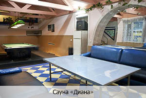 Сауна «Диана» - место, в котором можно полноценно расслабиться и отдохнуть, провести День Рождения или просто провести время с близкими людьми. Максимально в своих стенах сауна может принять до 10 гостей в большом блоке, для маленьких компаний есть отдельные помещения. «Диана» - сауна с бильярдом (пул), пятиметровым бассейном и купелью с холодной водой. Финско-русская парная, 4 отдельных сауны приглашает посетителей круглосуточно!