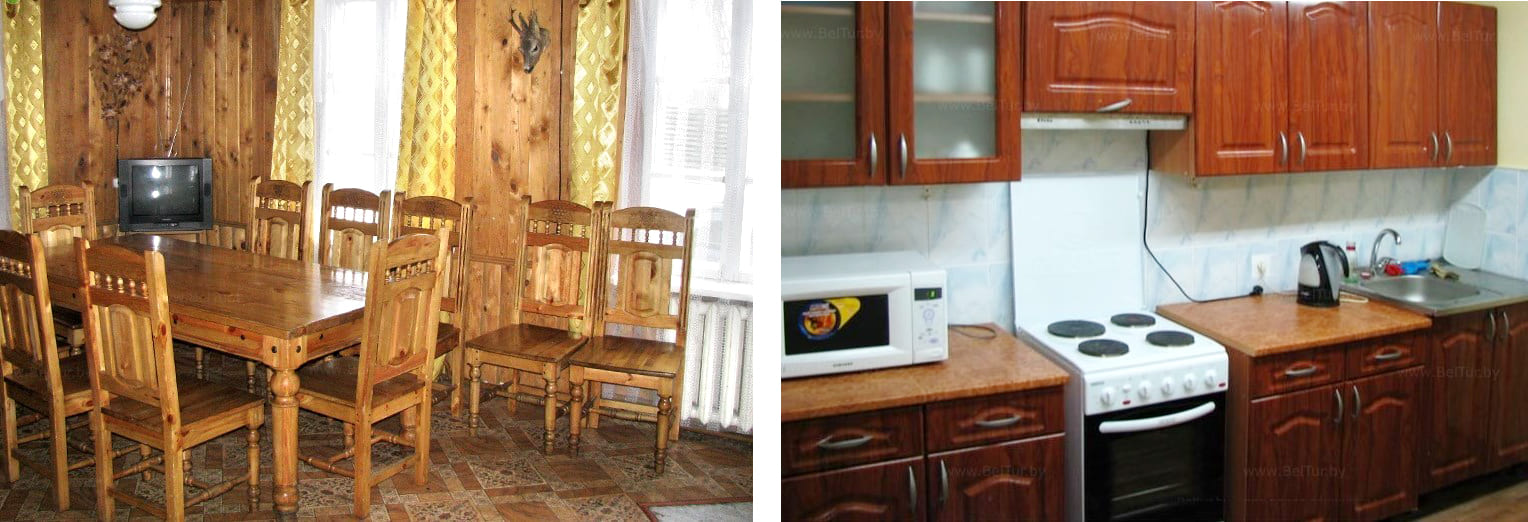 В каждом доме охотника есть по 2 спальных номера с санузлом и душем, рассчитанные на 6 человек, а также банкетный зал с возможностью принять до 30 человек. Кухня оснащена всем необходимым, чтобы организовать дружеский вечер или веселый день рождения.